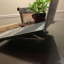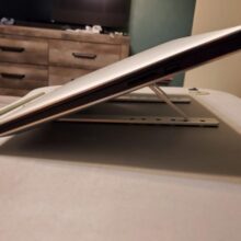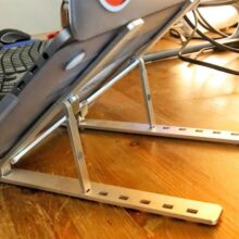 I wish I purchased this much sooner. My neck and headaches have stopped as soon as I put this up. Holds up pretty good as I have 2 kittens that just have to behind my laptop and play while I’m working. Some how it still stands and my laptop hasn’t moved. Don’t take me wrong they did hit one of the legs yesterday and it all came down. Kittens are getting bigger