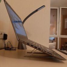 I never thought I’d need a laptop stand, but after getting this and using it I can see why so many people use them. This stand is extremely light but really sturdy. The rubber feet hold your laptop in very well and keep it from moving on your desk. I’m using it with a 2012 13” MacBook Pro and it fits perfectly. An added bonus is that it keeps the laptop much cooler and less likely to overheat. It has six different height levels. The second to lowest is the best in my opinion. It folds up nicely and comes with a faux-velvet drawstring pouch. Overall I’d highly recommend this for using as a portable laptop/tablet stand. Amazing value for the price.