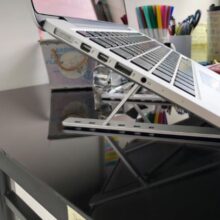 I really like how durable and simplistic this is. It weighs almost about nothing it comes in a cute gray pouch. There's no parts to assemble it's durable Its made of metal. You can use it for more than just your laptop. It works well with a tablet, a book, and I'm sure you can even use it for landscape mode for a phone, you don't have to open it all the way for it to work. It's very versatile and definitely a must-have for trying to ventilate a laptop and get a ton of more different types of uses at it while you're on the go or in the kitchen. Absolutely must buy!