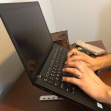 With staying indoors these days (Covid 19)… Zoom has become my new “normal”. Having to put my laptop on top of a box (find the right size) to get the perfect angle has been a hassle I didn’t need. I purchased this Stand… and I can’t be happier! It gives me the perfect angle for viewing and typing. Then it folds up and I can put it in a drawer until I need it next. I am thrilled with this and highly recommend it to anyone. VERY sturdy, has rubber lined on both sides (for your computer AND your table), folds neatly in a little pouch (provided), and holds my laptop perfectly. I tried it with my 15″ PC and it was fine with that size as well. LOVE!!!