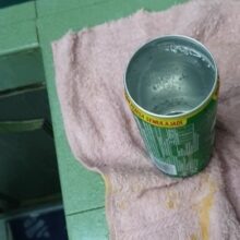 Grab the top edge of the can or bottom edge of the can for a sturdy grip (don’t hold the center of the can though due to internal pressure).