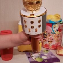 So fun! My daughters had so much fun singing karaoke with this microphone! It’s lightweight and perfect for kids. The recording that comes on in the beginning saying the Bluetooth was ready was strange for my taste