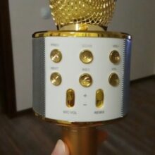 Feature packed, my wife loves this microphone! She uses a singing app and wanted her own microphone, instead of using her phones built-in microphone. It sounds great, speaker quality is good, and has nice LED's that flash with the volume of her voice. Charges through an older micro-usb cable, which is a bit outdated, but for the price, I can't complain. plays music easily with the included Last, Next, Pause/Play. Power button was hard to find, it's actually at the top and blends in with the dazzling silver! All-in-all, a good quality microphone!